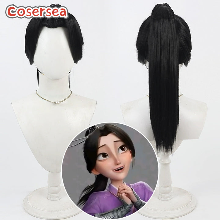 Ne Zha 2 Ne Zha Mother Mrs. Yin 55cm Black Ponytail Cosplay Wigs