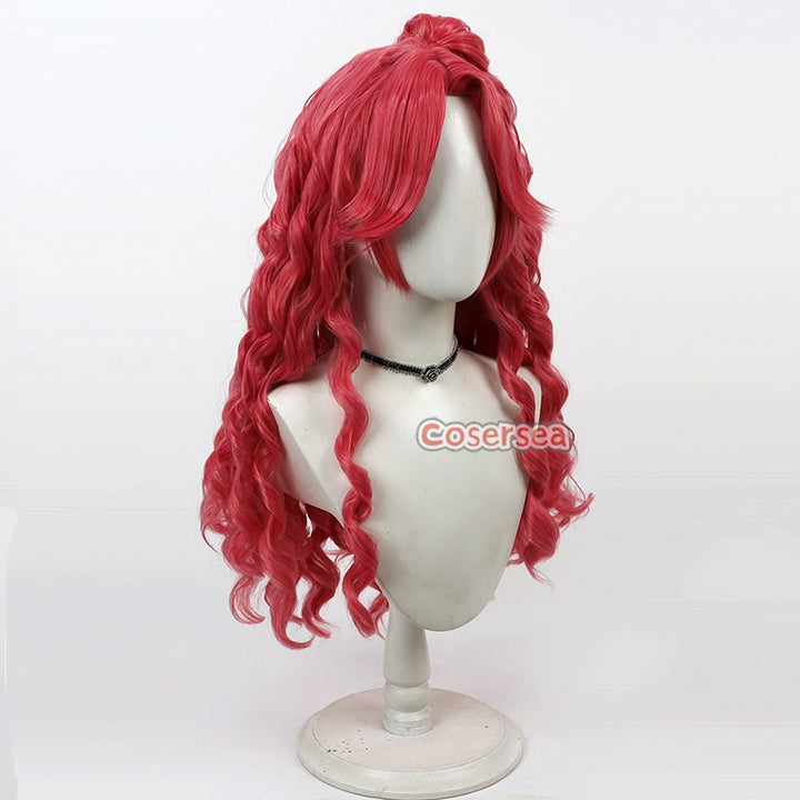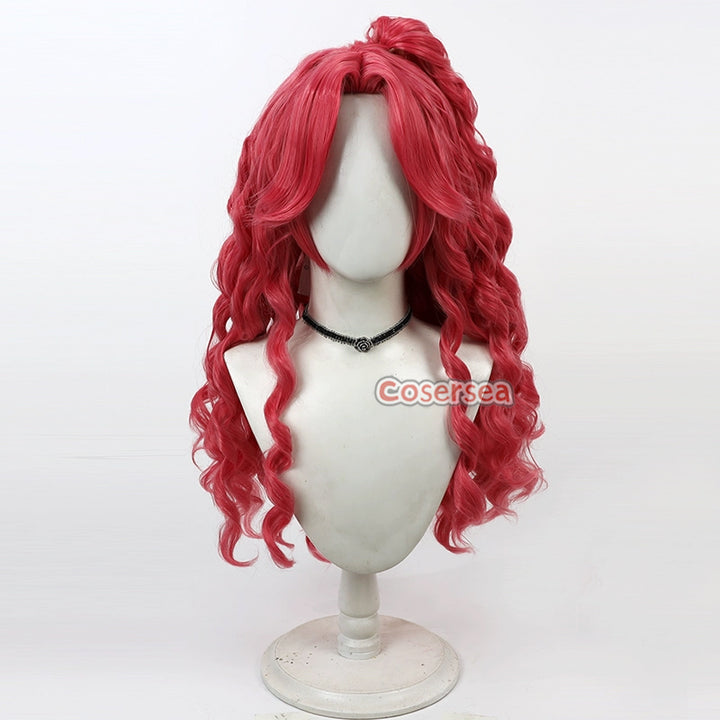 Pinkamena Diane Pie Pinkie Pie 65cm Long Wavy Rose Red Ponytail Cosplay Wigs