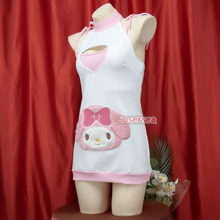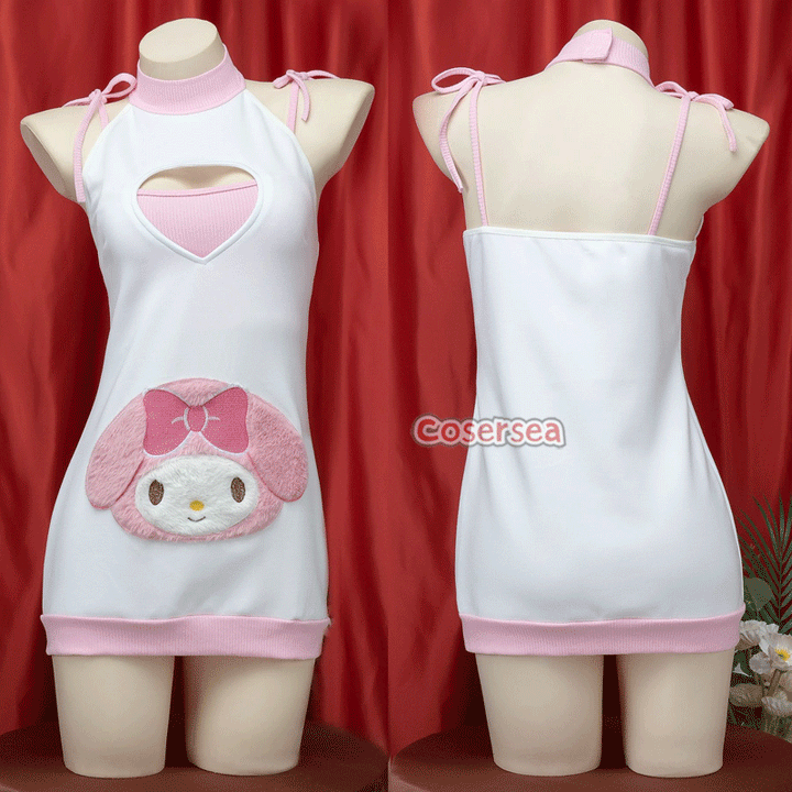 Soft Cute Dress Sexy Bunny Embroidered Hoodie Pajamas Dress