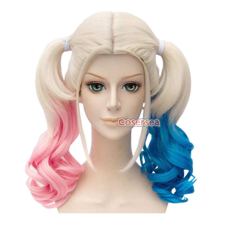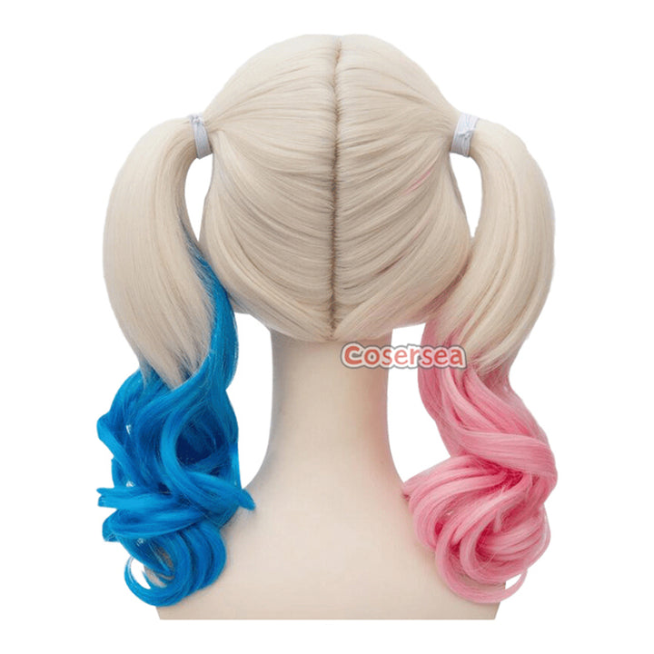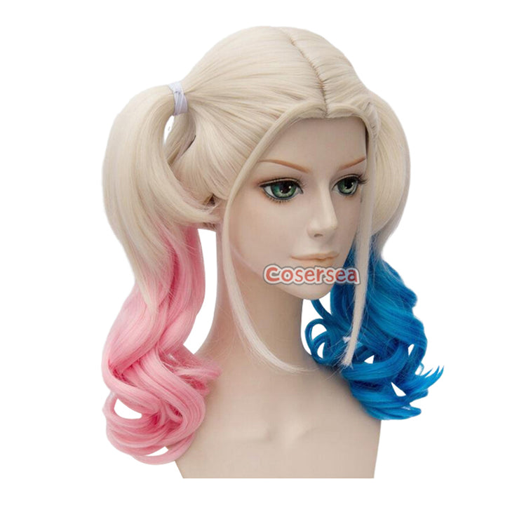 Suicide Squad Harley Quinn 50cm Blonde Mixed Pink And Blue Ponytail Cosplay Wigs