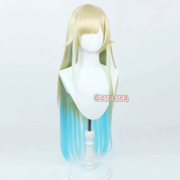 Virtual YouTuber Aizawa Ema 80cm Blonde Mixed Light Blue Cosplay Wigs