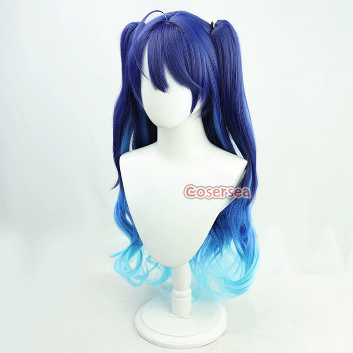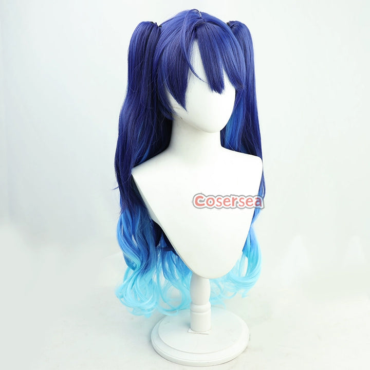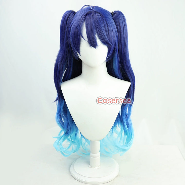 Virtual YouTuber Amamiya Kokoro 65cm Blue Mixed Light Blue Ponytail Cosplay Wigs