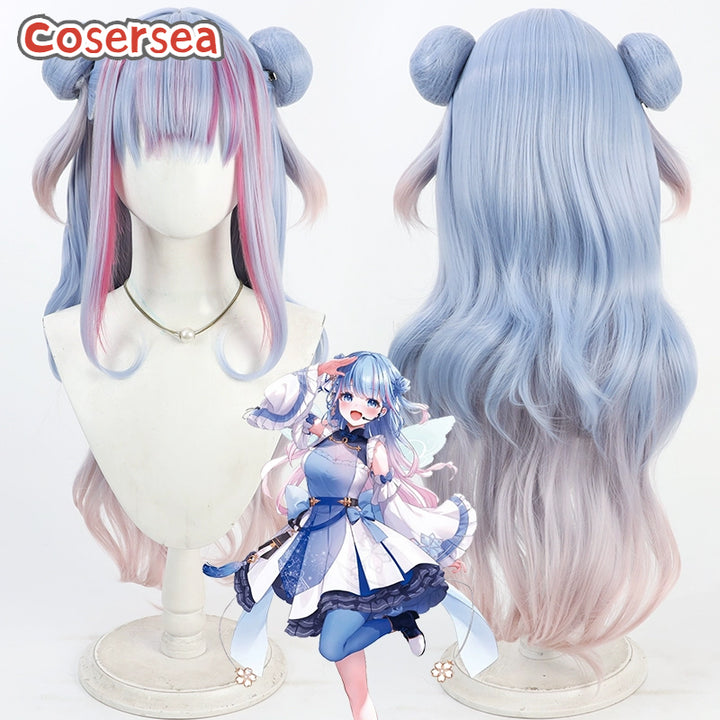 Virtual YouTuber Aoi Sakura 70cm Blue Mixed Cosplay Wigs With Buns