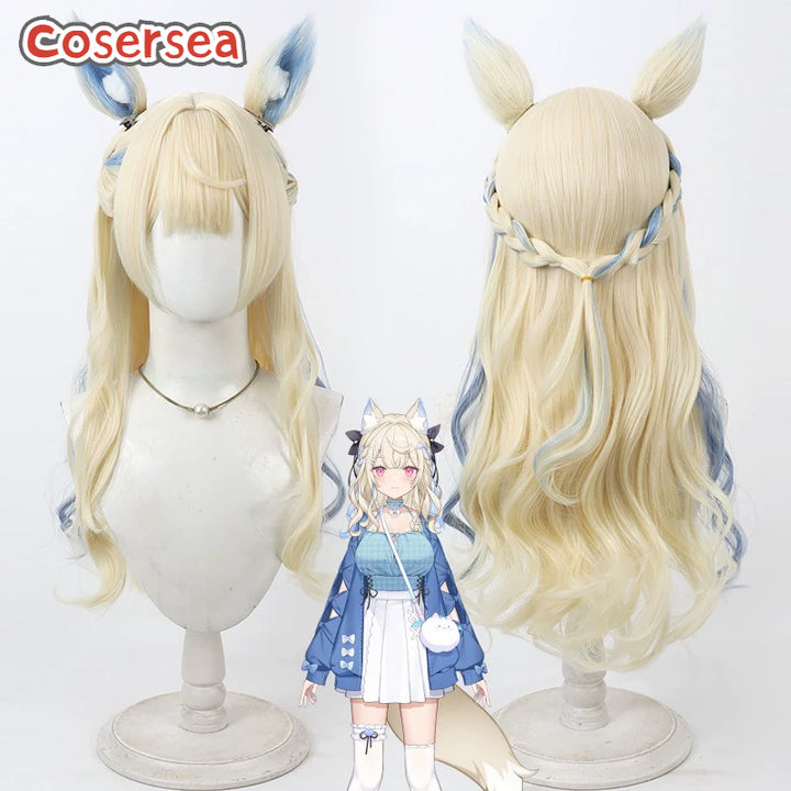 Virtual YouTuber Fuwawa Abyssgard 60cm Light Blonde Mixed Blue Cosplay Wigs