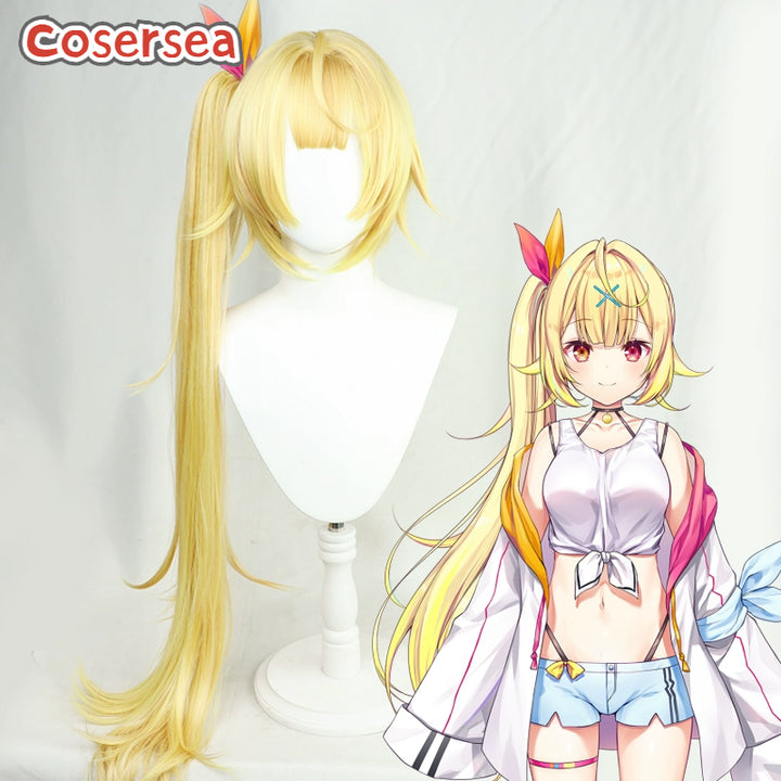 Virtual YouTuber Hoshikawa Sara 90cm Blonde Ponytail Cosplay Wigs