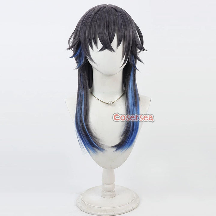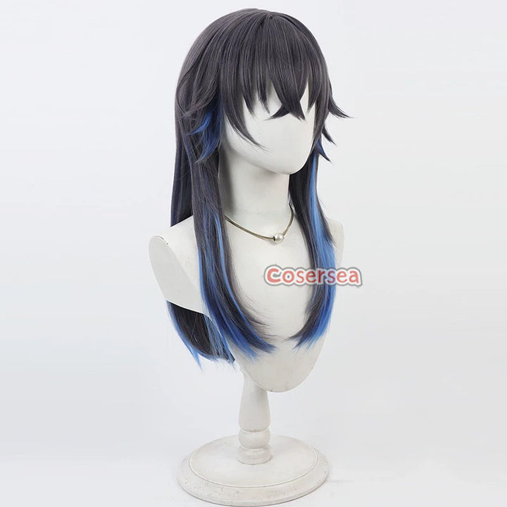 Virtual YouTuber Ichinose Uruha 60cm Dark Gray Mixed Blue Cosplay Wigs