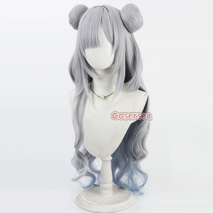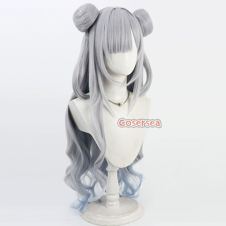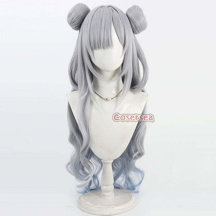 Virtual YouTuber Kaga Sumire 90cm Gray Mixed Blue Cosplay Wigs With Buns