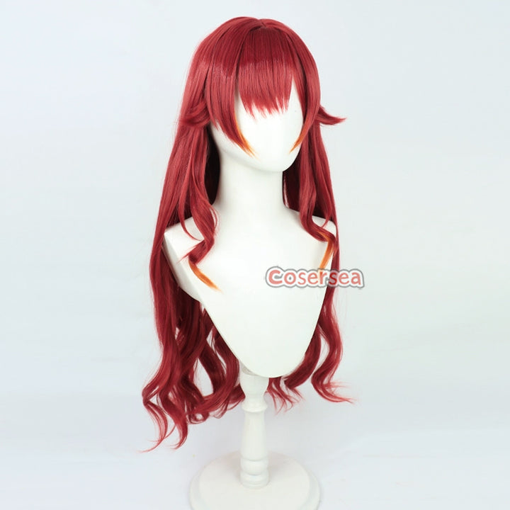 Virtual YouTuber Nekota Tsuna 90cm Red Mixed Orange Cosplay Wigs