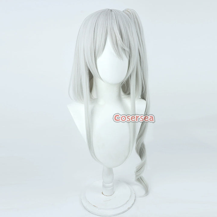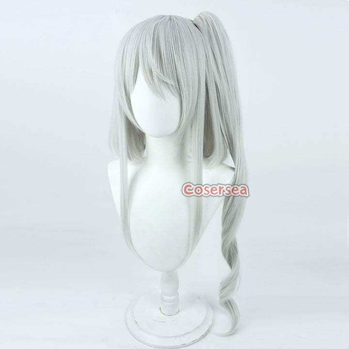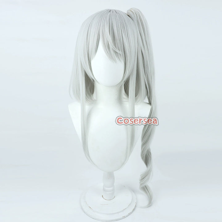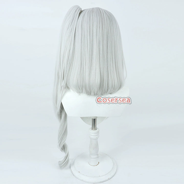 Virtual YouTuber Pomu Rainpuff 80cm Silver White Ponytail Cosplay Wigs