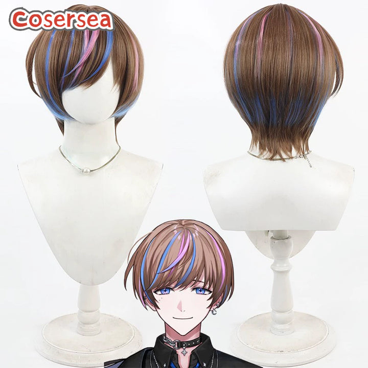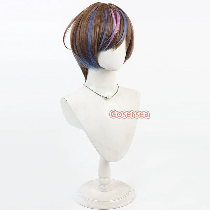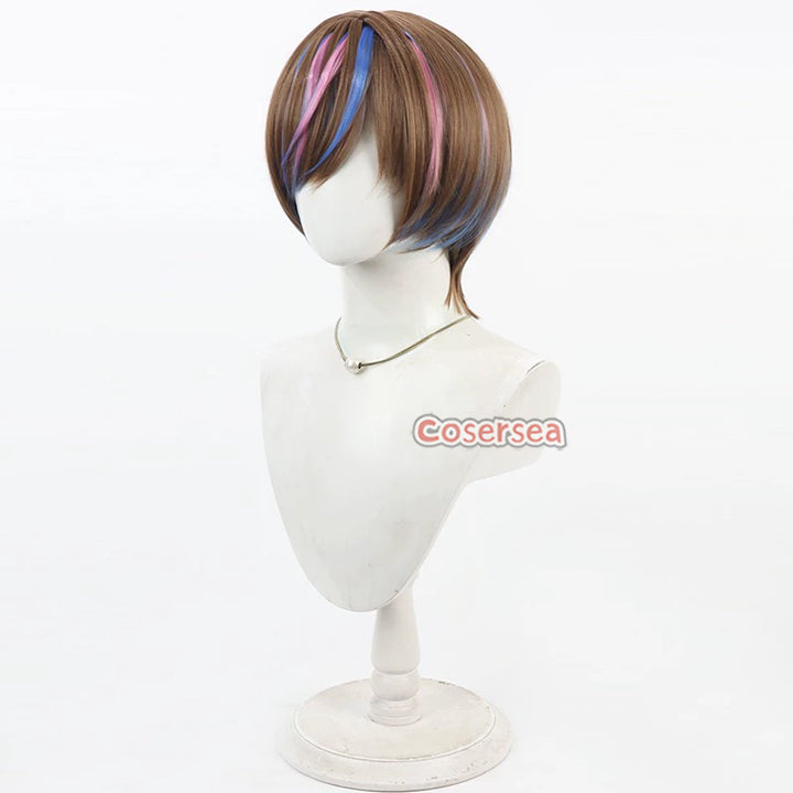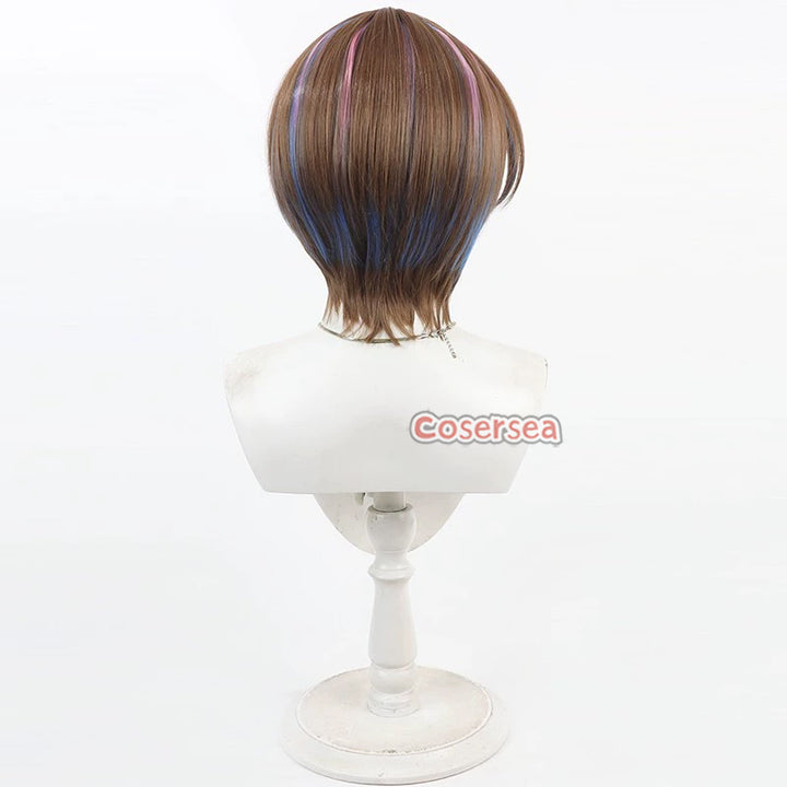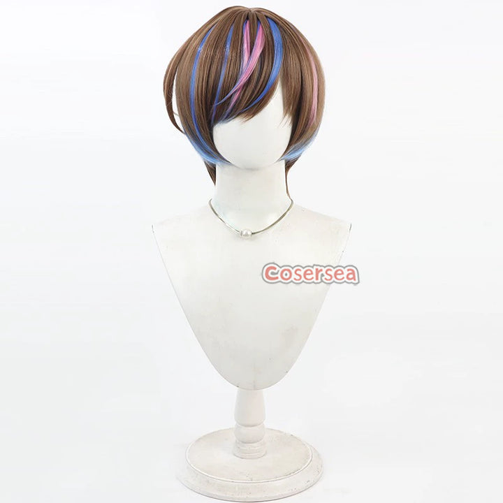 Virtual YouTuber Seible 30cm Brown Mixed Blue Pink Men Cosplay Wigs