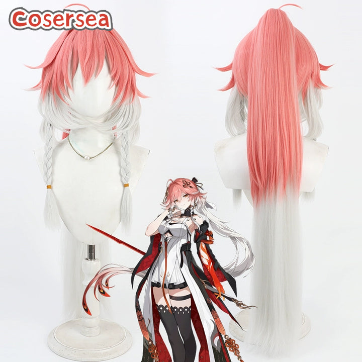 Wuthering Waves Changli 90cm Pink Mixed Silver White Ponytail Cosplay Wigs