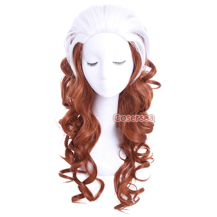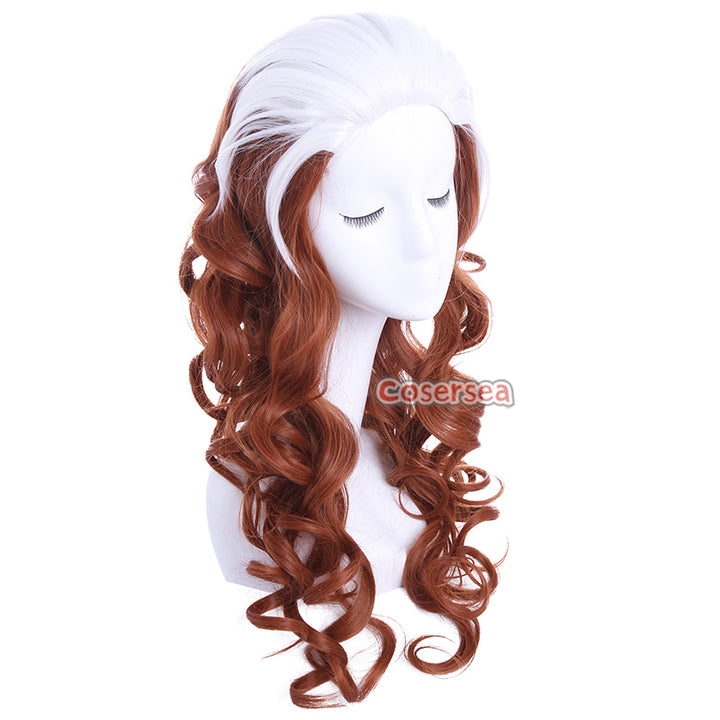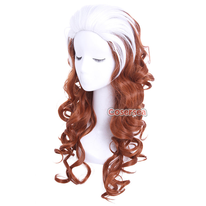 X Men Rogue Anna Marie 60cm Curly Wavy Brown Mixed White Cosplay Wigs